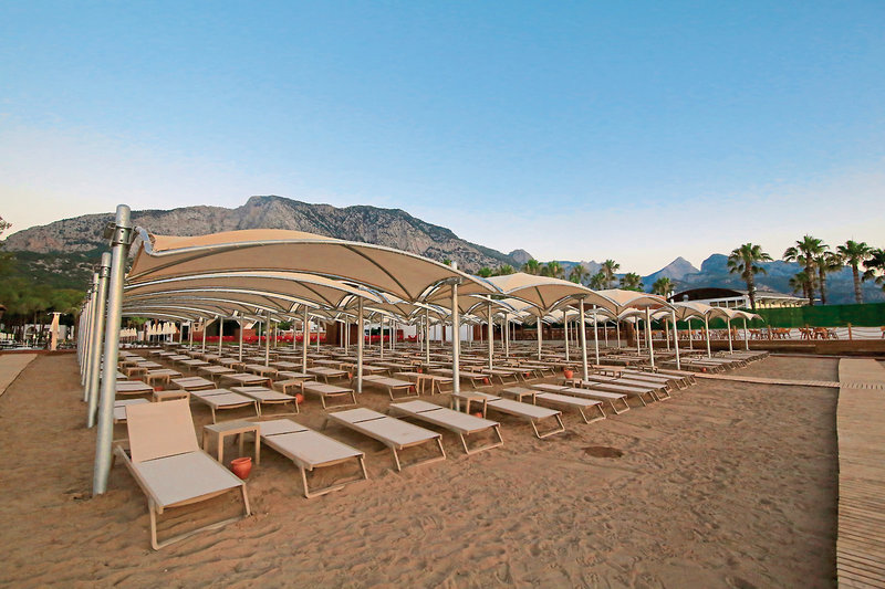 - Sand-/Kieselstrand: ca. 170 m lang, Sonnenschirme, Liegen, Strandtuch/Badetuch, Badesteg (Liegen, Schirme)