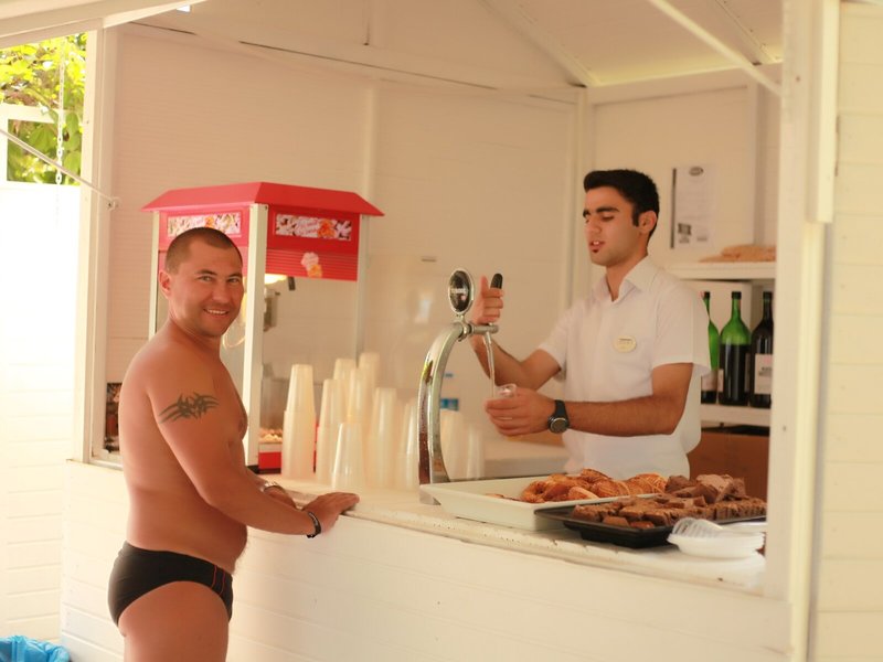 Sport & Fitness: Ob sportlich aktiv oder erholungssuchend, die Gäste können in einem der 2 Außenpools ein paar Längen schwimmen, während die Kinder einen Planschbereich für sich haben. Nervenkitzel auf der Wasserrutsche, erfrischende Getränke an der Poolbar und wohlige Muskelentspannung im Whirlpool – für jede Stimmung und Kondition bietet der Badebereich etwas an. Auch eine Terrasse mit Sonnenliegen und Sonnenschirmen ist vorhanden. Wem der Sinn nach Bewegung steht, werden Boccia und Beachvolleyball angeboten. Freunde des Wassersports können sich bei Wasseraerobic und Aqua-Fitness vergnügen. Das Haus bietet eine Vielzahl an Möglichkeiten zur sportlichen Aktivität im Indoor-Bereich, wie etwa ein Fitnessstudio, Tischtennis, Darts und Aerobic sowie gebührenpflichtig Billard. Das Hotel verfügt über einen Wellnessbereich mit einem Spa, einem Dampfbad, einem Schönheitssalon und einem Solarium sowie gegen zusätzliche Gebühr eine Sauna, einen Hammam und Massage-Anwendungen. Ein Animationsprogramm, ein Miniclub und Live-Musik sorgen für besten Freizeitspaß.