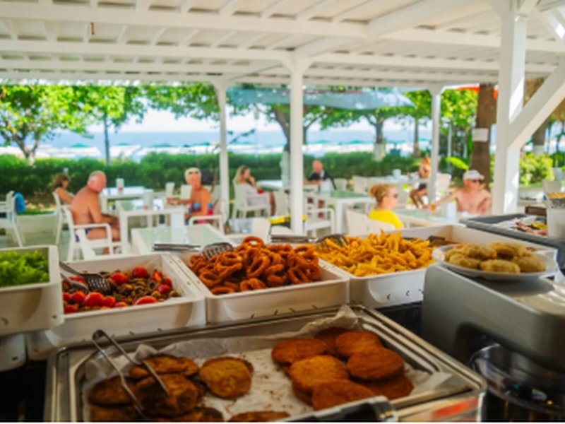 Essen & Trinken: Es stehen verschiedene gastronomische Einrichtungen zur Auswahl, wie ein Restaurant (mit Kinderhochstühlen), ein Café und eine Bar. Erfrischende Drinks an der Strandbar sorgen für Wohlfühlmomente. Die Unterkunft bietet als buchbare Verpflegungsleistung All-Inclusive. Ein leckeres und reichhaltiges Buffet erwartet die Gäste zum Frühstück, Mittag- und Abendessen. Diätgerichte und Kindermenüs werden auf Wunsch zubereitet. Zusätzlich sind spezielle Verpflegungsangebote und Snacks erhältlich. Alkoholische und alkoholfreie Getränke sind für die Gäste inklusive.