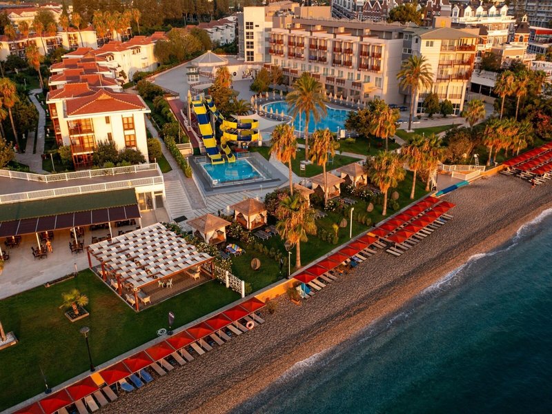 Poloha a okolie Hotel v rezorte sa nachádza približne 1 km od centra mesta Kemer s fascinujúcim prístavom a reštauráciami, barmi a nákupnými možnosťami. Letisko Antalya, vzdialené asi 56 km, trvá autom asi 1 hodinu. Hotel sa nachádza presne tam, kde sa pohorie Taurus stretáva s krištáľovo čistou modrou vodou Stredozemného mora. Autom je to do Demre asi 90 minút, do Phaselis asi 20 minút a do Aspendosu asi 2 hodiny.