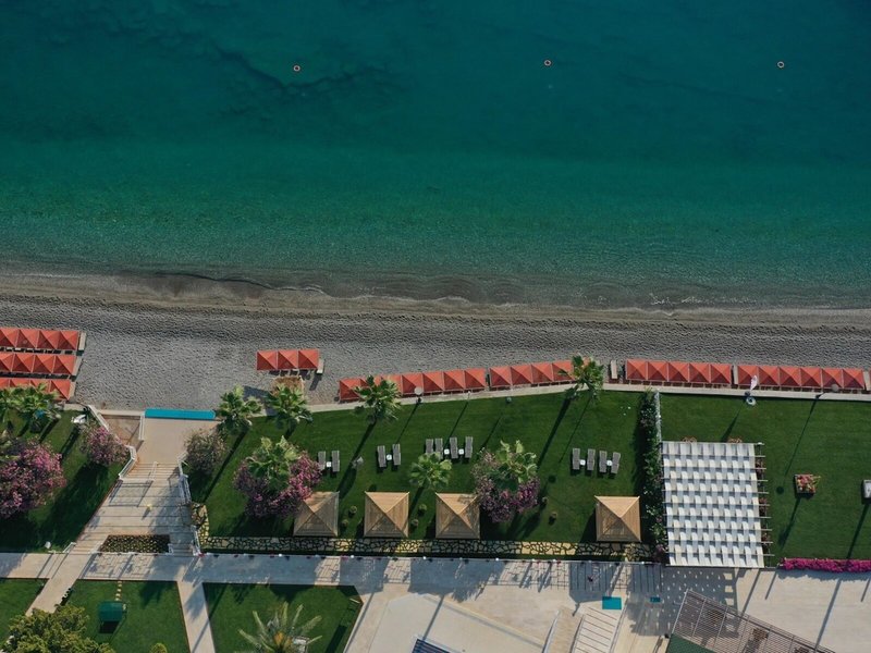 - Pláž: kamienková, dĺžka pláže: cca 270 m, súkromná, hotelová, ležadlá, slnečníky