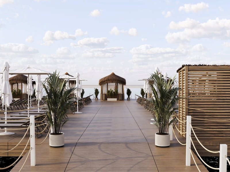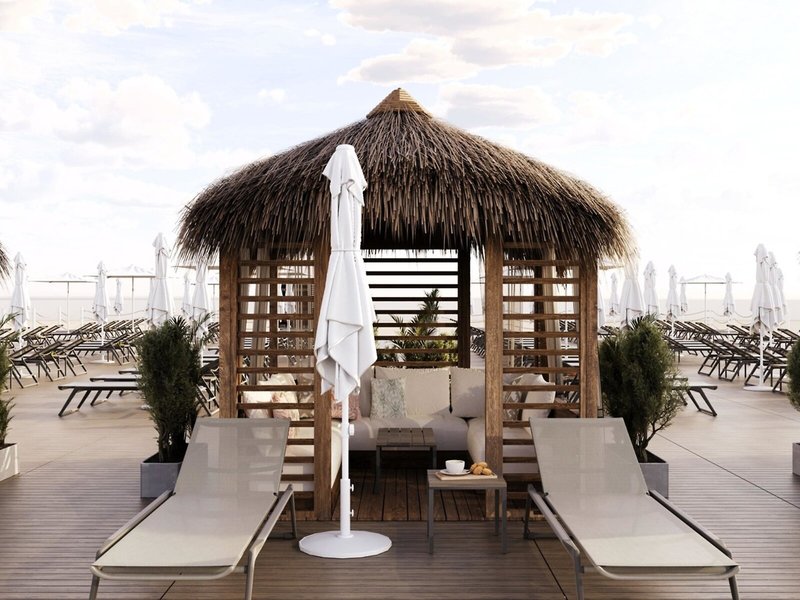 - Strand: Kies, privat, hoteleigen, Liegestühle, Sonnenschirme