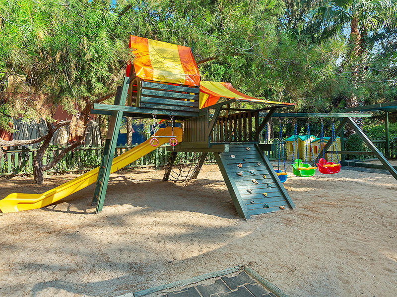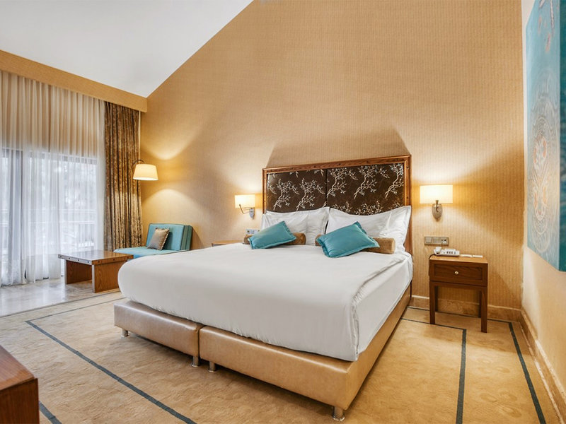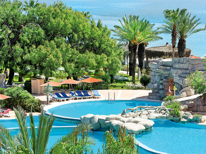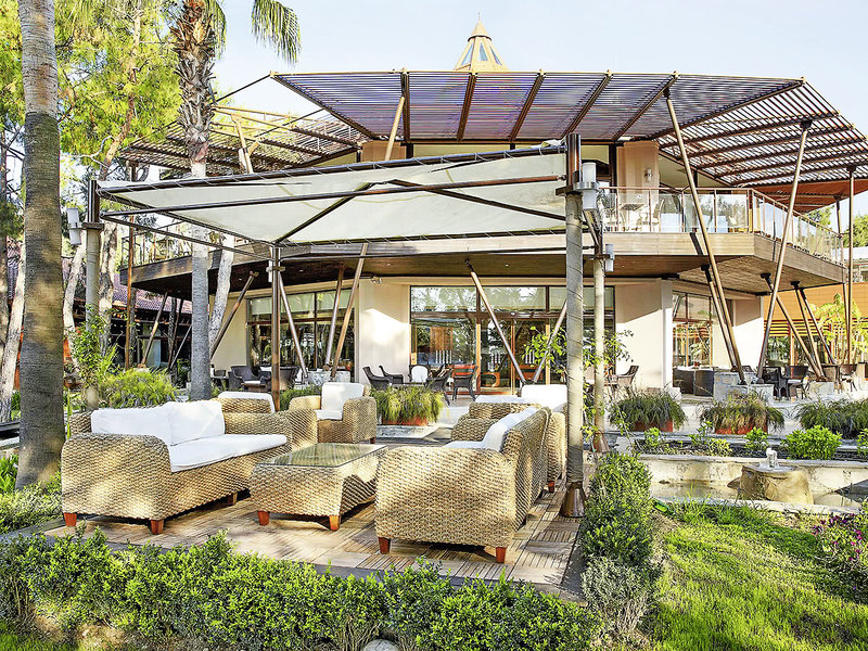 Ausstattung: Weitläufige und stilvoll gestaltete Hotelanlage, bestehend aus 30 3- bis 4-stöckigen Clubgebäuden. In der Außenanlage Hauptpool, Aquapark (stdw.), separates Kinderbecken, Sonnenterrassen, umgeben von Schatten spendenden Pinienbäumen. Pool- und Strandbar. Liegen, Schirme, Auflagen und Badetücher an den Pools und am Strand (geg. Kaution). Großzügig gestaltete Empfangshalle mit Rezeption und Lobbybar (WLAN inklusive). Hauptrestaurant mit Außenterrasse, 5 À-la-carte-Restaurants (u.a. international, orientalisch, mexikanisch), diverse Bars, Geschäfte, Friseur, Diskothek. Landeskategorie: 5 Sterne, 545 Zimmer.