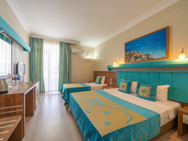 Šport & Fitness: Bazénový komplex so 4 vonkajšími bazénmi a 3 detskými bazénikmi je ideálny pre aktívny oddych a pravidelný aqua tréning. Okrem toho osviežujúce nápoje pri bazéne/snack bare a tobogane spravia všetkým milovníkom vody najlepšiu náladu. Na slnečnej terase sú ležadlá a slnečníky. Rezort ponúka vonkajší športový program vrátane cyklistiky/horskej cyklistiky, plážového volejbalu a basketbalu alebo za poplatok tenis. Hostia ubytovania si môžu vychutnať širokú škálu vodných športov, vrátane bicyklovania, kanoistiky, šnorchlovania a vodného aerobiku, ako aj vodné lyžovanie, vodné skútre, jazdu na banáne a parasailing za poplatok. Dovolenkový komplex ponúka športovým nadšencom aj mnoho indoorových aktivít, vrátane telocvične, stolného tenisu, šípok, aerobiku a stolného futbalu/futbalu. Rezort ponúka wellness centrum s kúpeľmi, saunou a hammamom. Masáže sú k dispozícii za poplatok. Mini klub, živá hudba a diskotéka sa postarajú o tú najlepšiu zábavu vo voľnom čase.