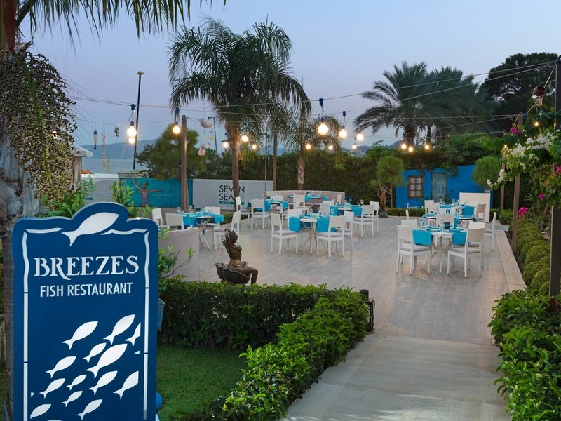 - Spezialitätenrestaurant „Breezes A La Carte Restaurant“: Küche: Fisch/Meeresfrüchte, Kindermenü: ohne Gebühr, Reservierung nicht notwendig, à la carte, Menüwahl, Reservierung notwendig, gegen Gebühr, saisonabhängig; wetterabhängig, am Strand