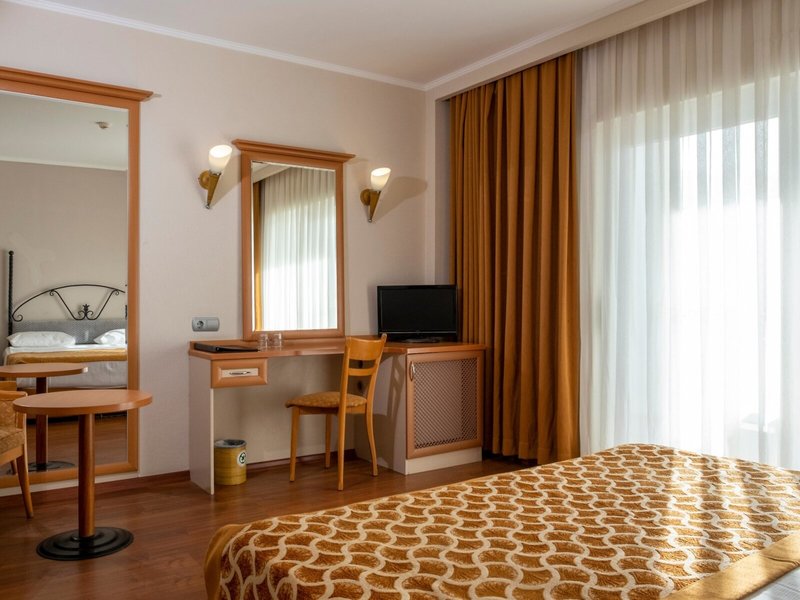 - Izba Standard s výhľadom na bazén (DZX2), dvojlôžková izba, v hlavnej budove, strana bazéna, výhľad na bazén, cca 20 - 24 m², posledná čiastočná rekonštrukcia v roku 2012, celkový počet izieb v tomto type izby: 1, rozloženie: 1 spálňa, detská postieľka: zdarma, na vyžiadanie a rezervácia nutná, klimatizácia: zadarmo, individuálne nastaviteľná, centrálne ovládaná, kúrenie: centrálne ovládané, podlaha: laminát, trezor: zadarmo, minibar: zadarmo, mäkké nápoje: zadarmo, voda: zadarmo, telefón, internet: WLAN/ WiFi: zadarmo, TV: plochá obrazovka, upratovanie: denne 9:00 - 16:00, zadarmo, sprcha, WC , papuče: zdarma, fén, balkón: s posedením