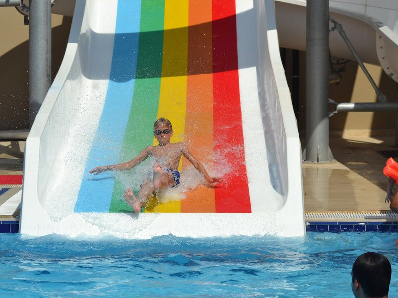 Sport & Fitness: Während die Erwachsenen im Außenpool ein paar Runden schwimmen, kommen die Kinder im Planschbecken auf ihre Kosten. Erfrischende Getränke an der Pool-/Snackbar und wohlige Entspannung im Whirlpool bringen alle Wasserratten in die beste Stimmung. Auf der Sonnenterrasse mit Liegestühlen und Schirmen lässt sich der Urlaub genießen. Wer auch auf Reisen nicht auf Sport verzichten möchte, kann sich beim Radfahren/Mountainbiking und Beachvolleyball amüsieren. Minigolf wird kostenpflichtig angeboten. Eine Vielzahl an Sportarten steht zur Verfügung, darunter Wassersportarten wie Jetskifahren, Bananenbootfahren, Kajakfahren und Tauchen und gegen Gebühr Tretbootfahren und Kanufahren. Die Unterbringung bietet eine Vielzahl an Möglichkeiten zur sportlichen Aktivität im Indoor-Bereich, wie etwa ein Fitnessstudio, Tischtennis, Darts, Gymnastik und Aerobic sowie gebührenpflichtig Billard. Das Haus verfügt über einen Wellnessbereich mit einem Spa, einer Sauna, einem Dampfbad, einem Hammam, einem Schönheitssalon und einem Solarium. Kostenpflichtig: Massage-Anwendungen. Zu den weiteren Freizeitangeboten zählen ein Animationsprogramm, ein Miniclub, eine Disco und ein Nachtclub.