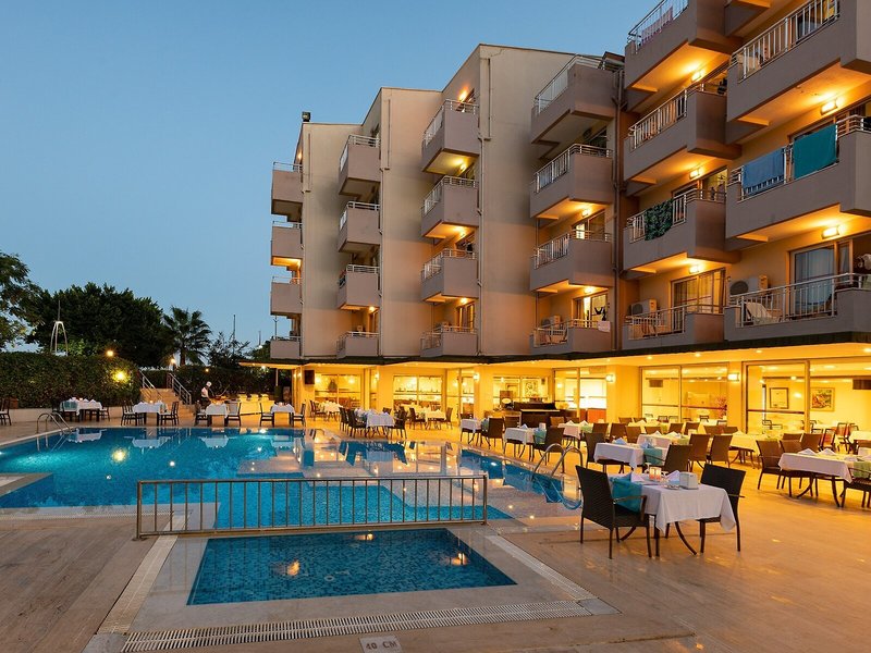 Poloha a okolie Tento hotel vhodný pre rodiny s deťmi sa nachádza v centre mesta Kemer, priamo na pláži. Obchody, zábavné štvrte a nočné podniky sú v pešej vzdialenosti. Hotel sa nachádza v tesnej blízkosti medzinárodnej rally trate a letisko Antalya je vzdialené približne 45 km.