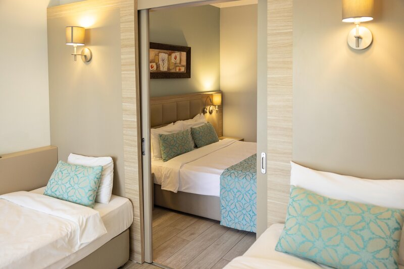 Rodinné izby: Minibar (za poplatok), rýchlovarná kanvica, uteráky, TV, telefón, internet (za poplatok), trezor (za poplatok), vaňa/sprcha, WC, fén. Max. 4 osoby.