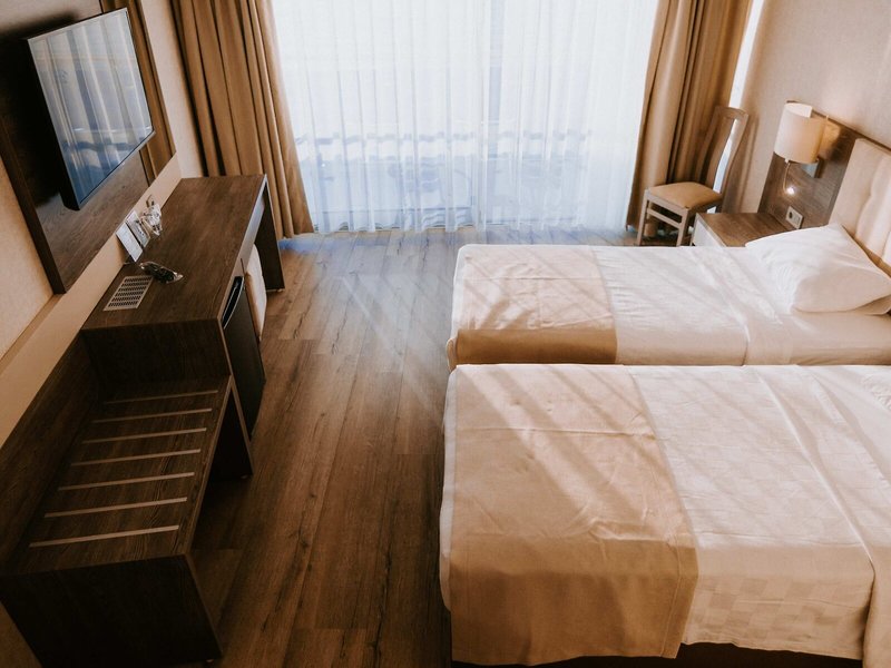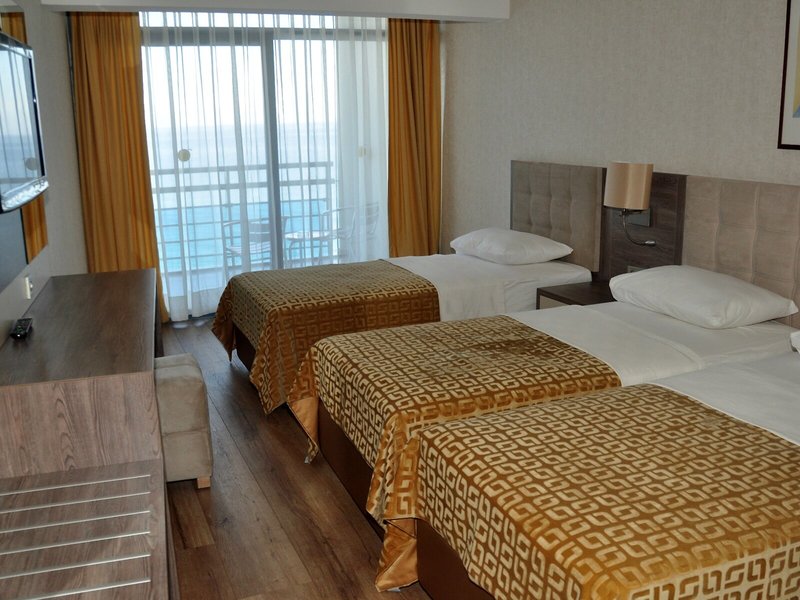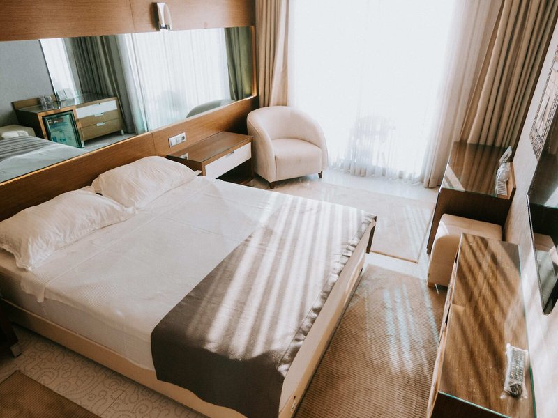 Ubytovanie: Klimatizácia a kúrenie zabezpečujú príjemnú klímu v izbách. Hostia si môžu vychutnať výhľad na more z balkóna alebo terasy. Izby s kobercami sú vybavené manželskou posteľou, manželskou posteľou alebo posteľou veľkosti king. K dispozícii je aj detská postieľka a prístelka. K dispozícii je aj trezor, minibar a písací stôl. Štandardom je aj chladnička. Telefón, TV, rádio a bezplatné Wi-Fi pripojenie na internet zabezpečujú maximálne pohodlie počas dovolenky. Kúpeľňa so sprchovacím kútom a vaňou je vybavená sušičom vlasov a županmi. K dispozícii sú aj bezbariérové izby.