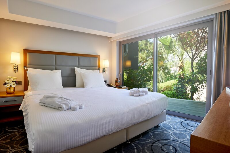 Tento rezort vhodný pre rodiny, ktorý sa nachádza v idylickej zátoke s nádherným výhľadom na Egejské more, zaujme širokou škálou športov a množstvom zábavy pri kúpaní. Užite si dlhú prechádzku uprostred subtropickej záhrady a doprajte si výnimočný oddych!