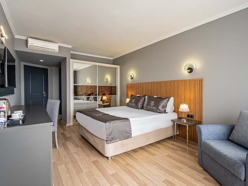 Lage & Umgebung Das Hotel besfindet sich in Kuşadası. Das Stadtzentrum ist etwa 700 m entfernt und der Flughafen İzmir liegt in einer Entfernung von ca. 70 km.