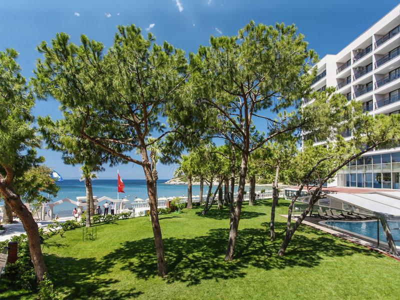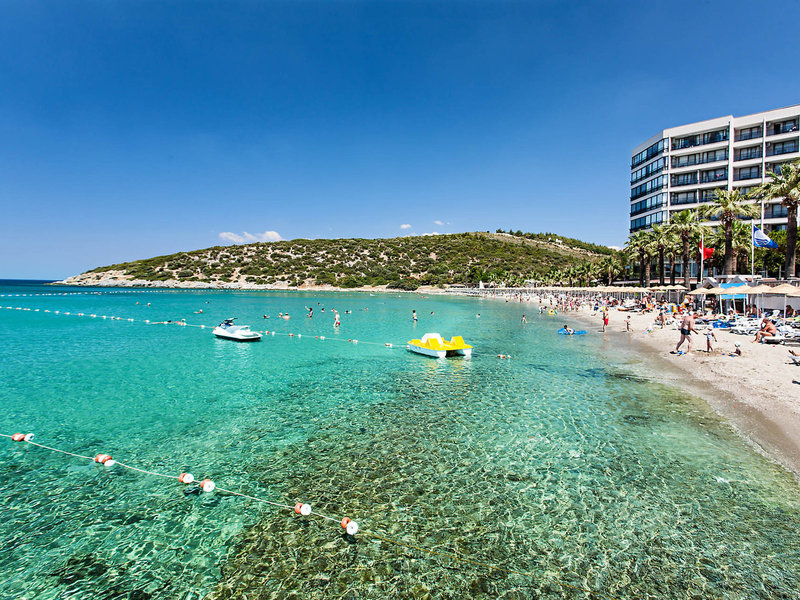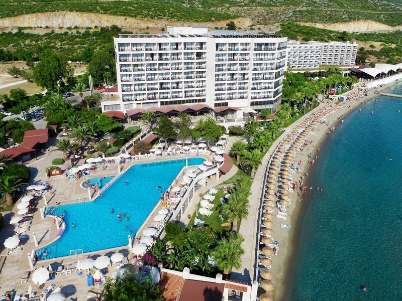 Poloha a okolie Nachádza sa priamo na mierne sa zvažujúcej piesočnatej pláži v malebnej zátoke Kusadasi. Živé centrum mesta je vzdialené cca 5 km a je ľahko dostupné. Letisko Izmir Adnan Menderes je vzdialené približne 60 km, čo zabezpečuje dobré spojenie. Ideálne ako východiskový bod pre výlety do regiónu.