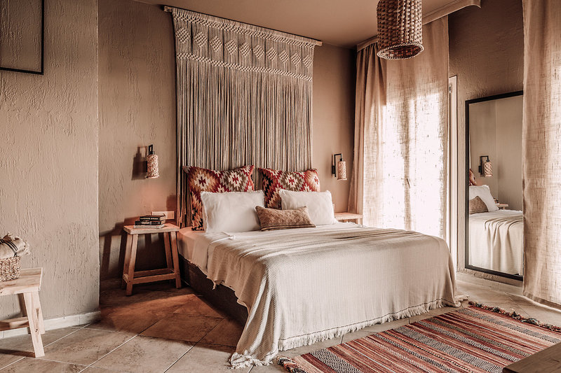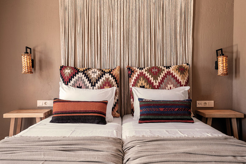 - 21-25 qm, Doppel, Gartenseite, Landblick, Bergblick, Bettwäsche, Handtücher und Matratzen aus 100% Bio-Baumwolle, Doppelbetten (1 Doppel- oder 2 Einzelbetten), 1 Bad, Dusche, Regendusche, WC, Haartrockner, Fliesen, Klimaanlage, individuell regulierbar, Mini-Kühlschrank, Safe, 1 TV (Sat-TV, Flachbildschirm), WLAN, Balkon oder Terrasse (möbliert)