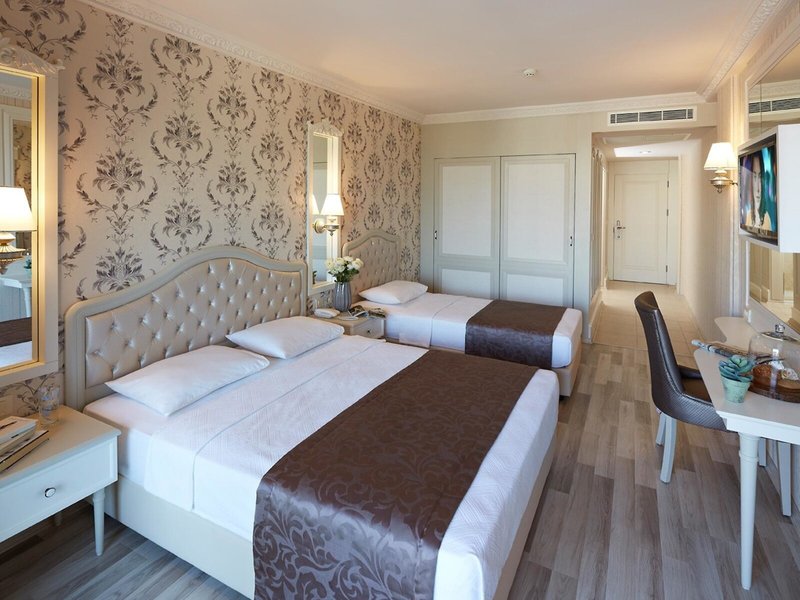 Essen und Trinken: Frühstück (von 07:00 - 10:00 Uhr) vom Buffet. All Inclusive: Frühstück, Mittag- und Abendessen. Frühstück, Mittag- und Abendessen dabei nur in ausgewählten Restaurants. Wasser zu bestimmten Service-Zeiten. Softdrinks (10:00 - 00:00 Uhr), Bier (10:00 - 00:00 Uhr), Wein (10:00 - 00:00 Uhr), Kaffee und Tee (10:00 - 00:00 Uhr), Kuchen/Gebäck (12:00 - 18:00 Uhr), nationale alkoholische Getränke (10:00 - 00:00 Uhr), kleine Snacks (15:00 - 16:00 Uhr) und Mitternachtssnacks (23:30 - 00:00 Uhr).