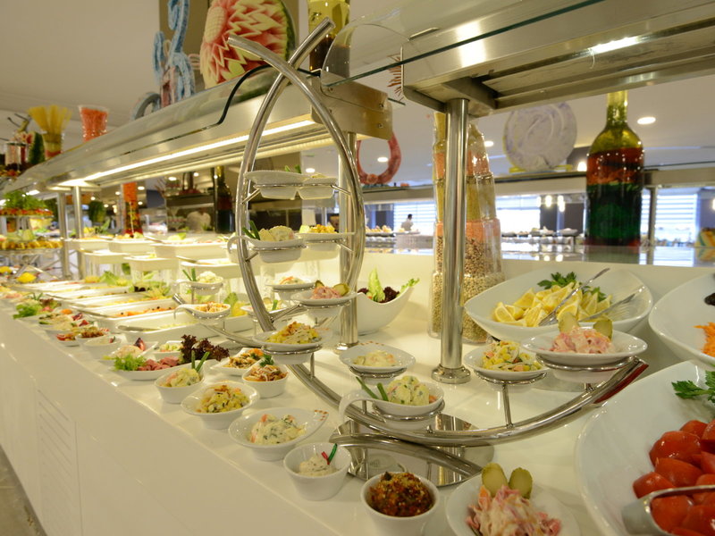 - Hlavná reštaurácia SAFRON HLAVNÁ BUFFETOVÁ REŠTAURÁCIA: Kuchyňa: medzinárodná, detský bufet: zdarma, v cene All Inclusive, rezervácia nie je nutná, vegetariánske jedlá: zdarma, v cene All Inclusive, rezervácia nie je nutná, bufet, show cooking, rezervácia nie nutné, zdarma, v cene All Inclusive, apríl - október, po - ne, klimatizované, priestor pre fajčiarov, vysoká stolička, potrebné vhodné oblečenie