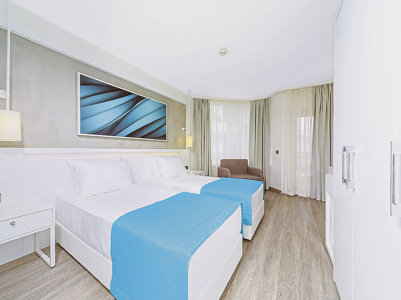 Vybavenie: Obľúbený rekreačný hotel len pre dospelých s priateľskou atmosférou. Bazén s vírivkou, priestranná slnečná terasa, ležadlá, vankúše, slnečníky, osušky k bazénu/pláži, snack bar. Lobby s recepciou, lobby bar. Wi-Fi, hlavná reštaurácia s terasou. Oficiálne hodnotenie: 4 hviezdičky, 227 izieb, 6 poschodí, výťah.