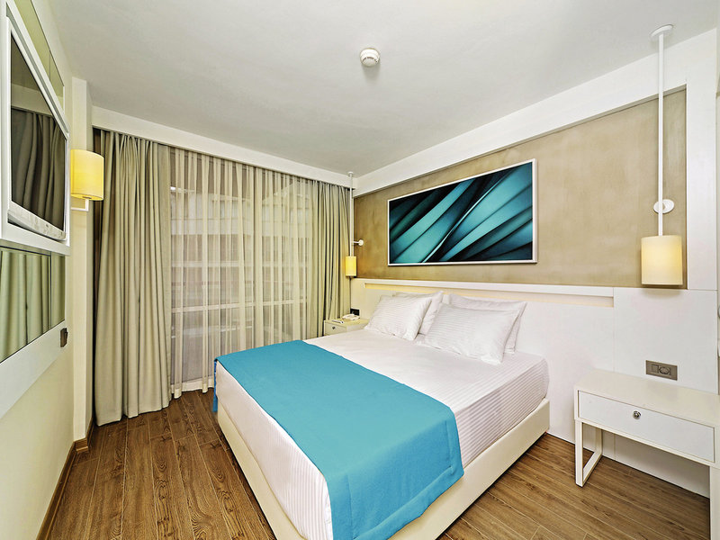 - Standard Double Lateralseaview (DZX2), Doppelzimmer, im Hauptgebäude, eingeschränkter Meerblick, ca. 16 m², letzte Teilrenovierung 2014, kombiniertes Wohn-/Schlafzimmer, Klimaanlage: zentral gesteuert, Heizung: zentral gesteuert, Fußboden: Laminat, Safe: Barzahlung, pro Tag ca. 2 EUR, Sofa, Wasserkocher, Minibar: Wasser, Telefon, Internet: WLAN/WiFi: ohne Gebühr, Fernseher: Sat-TV, Reinigungsservice, Dusche, WC, Slipper, Föhn, Kosmetikspiegel, Balkon: mit Sitzgelegenheit
