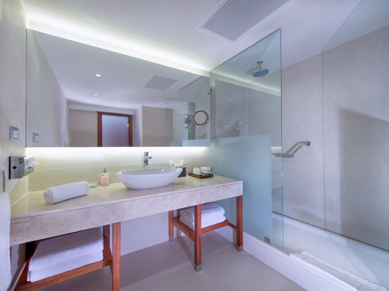 - Suite Sea View (SUM1), Suite, Nichtraucherzimmer, im Hauptgebäude, Meerseite, Meerblick, ca. 45 m², letzte Komplettrenovierung 2013, Gesamtanzahl der Räume in diesem Zimmertyp: 2, Aufteilung wie folgt: bestehend aus 2 Zimmern, optisch getrennt durch Schiebetür, Klimaanlage: ohne Gebühr, Mai - Oktober, individuell regelbar, zentral gesteuert, Heizung: November - April, individuell regelbar, zentral gesteuert, Fußboden: Laminat, Safe, Bügeleisen, Bügelbrett, Espressomaschine, Kaffee-/Teezubereiter, Wasserkocher, Minibar: ohne Gebühr, Softdrinks: ohne Gebühr, Wasser: ohne Gebühr, Minibarauffüllung: täglich, Telefon, Internet: WLAN/WiFi: ohne Gebühr, Fernseher: Flatscreen, Radio, Reinigungsservice: gegen Gebühr, Dusche, WC, Bademantel, Slipper, Föhn, Kosmetikspiegel, Balkon: mit Sitzgelegenheit