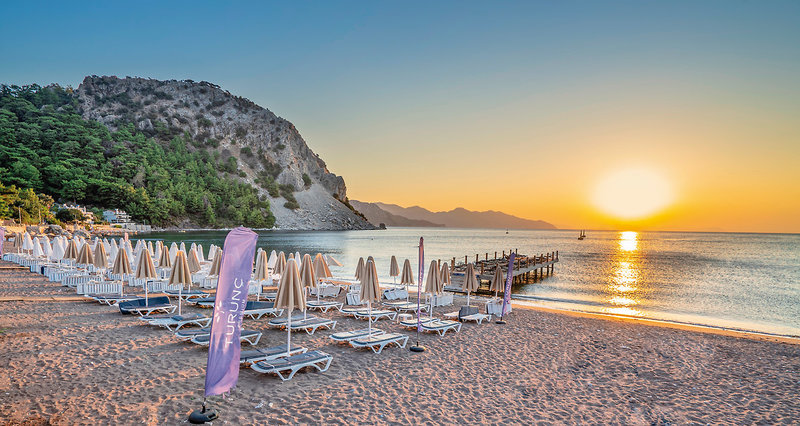 • Piesočnatá/kamienková pláž: patrí ku komplexu, dĺžka cca 100 m, slnečníky, ležadlá, plážový uterák/osuška (proti kaucii)