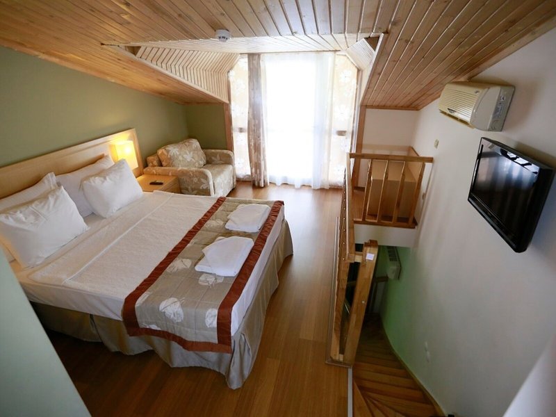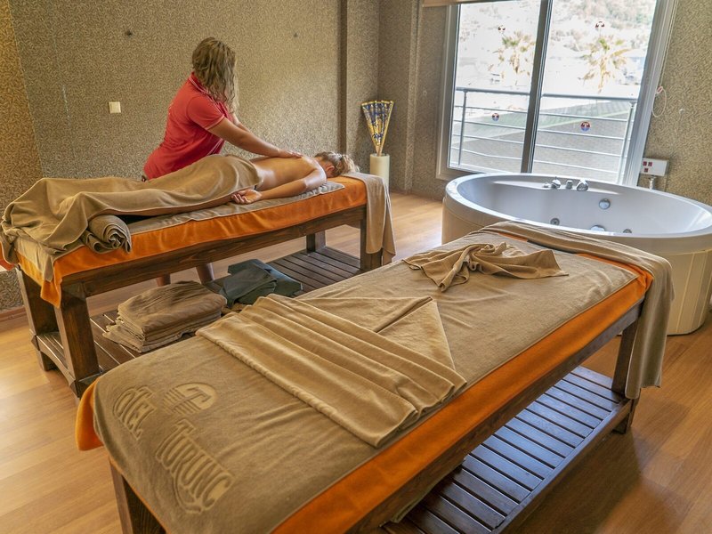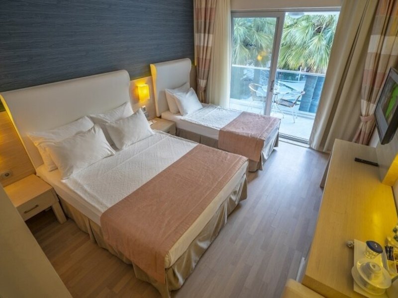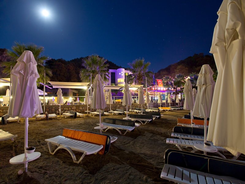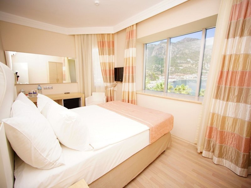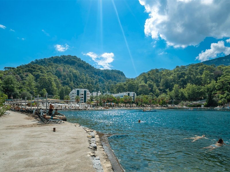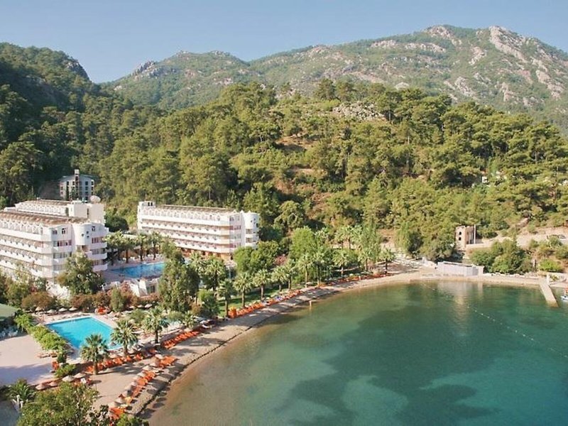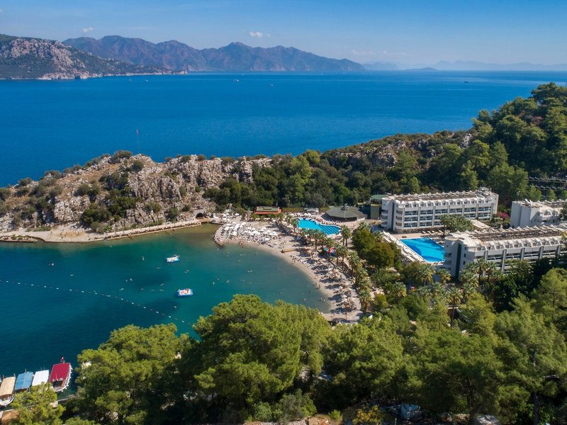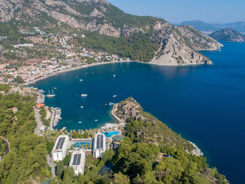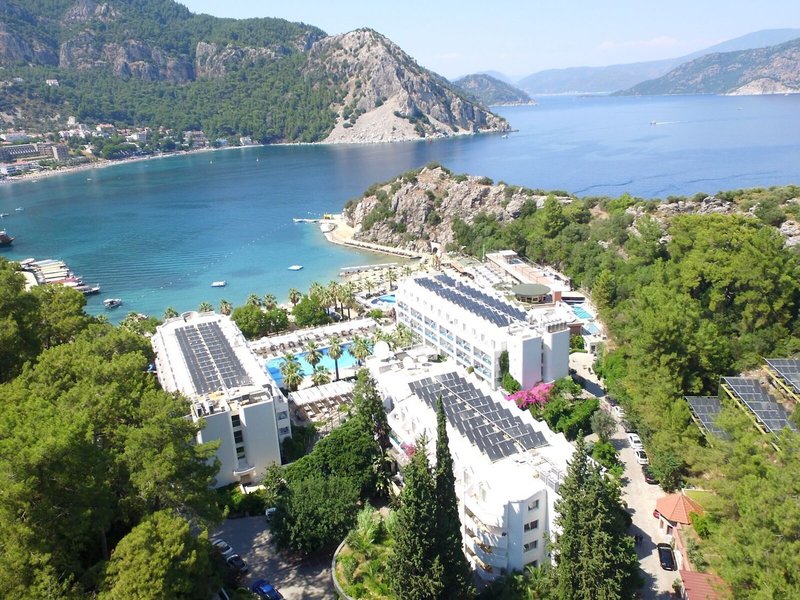 Poloha a okolie Hotel sa nachádza na úrovni mora vo vlastnom súkromnom zálive pri zálive Turunc. Je vzdialený približne 20 km od centra Marmarisu. Najbližšie bary, kluby a obchody nájdu hostia do 500 m od hotela. Verejná doprava je priamo pred hotelom. Hrad Marmaris a prístav sú vzdialené približne 20 km od hotela, Muğla je vzdialená približne 75 km, Datça je vzdialená približne 80 km a starobylé mesto Kaunos je vzdialené približne 100 km. Letisko Dalaman je vzdialené približne 118 km od hotela.
