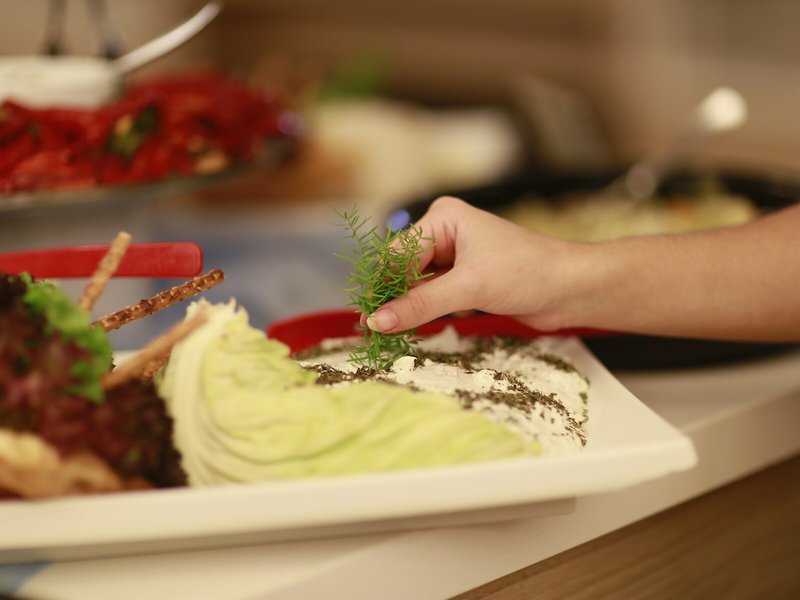 Jedlo a pitie: V jedálni sa nachádza bar. Hostia si môžu vychutnať kulinárske špeciality v nefajčiarskej reštaurácii, ktorá je vybavená klimatizáciou a detskými stoličkami. K dispozícii je all-inclusive stravovanie. Na raňajky, obed a večeru čaká hostí chutný a rozsiahly bufet. Na požiadanie sú k dispozícii bezlepkové jedlá a detské menu. K dispozícii je aj občerstvenie. Zvláštnou atrakciou je show cooking. Alkoholické a nealkoholické nápoje sú zahrnuté v cene pre hostí.