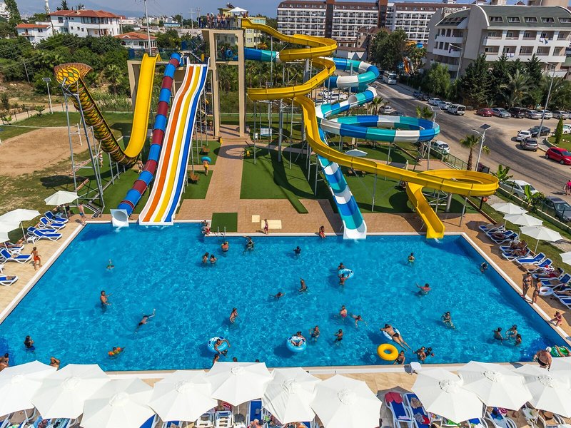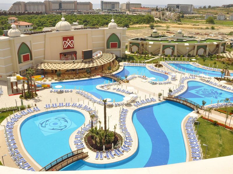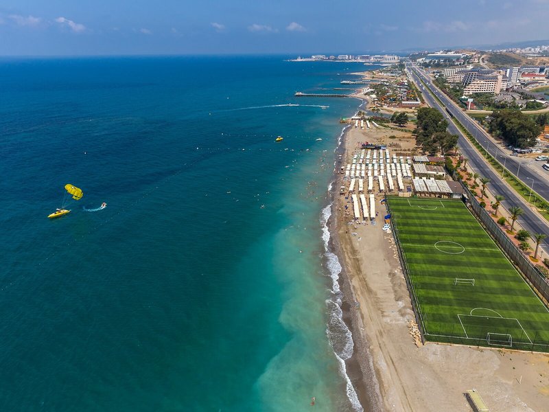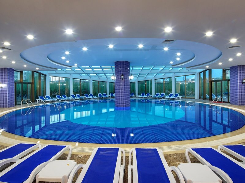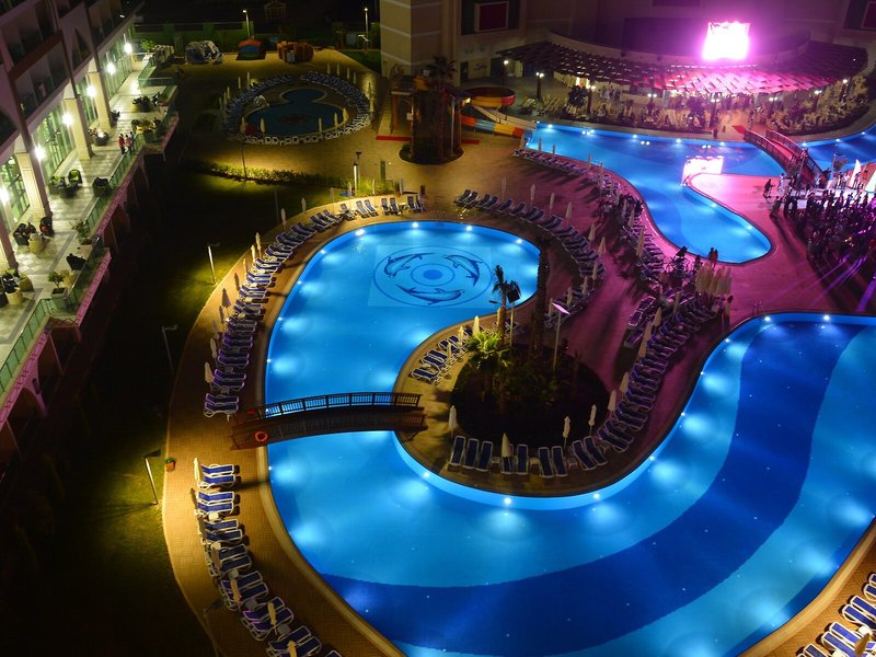 Sport & Fitness: Neben Innen- und Außenpools gibt es einen Kinderbadebereich. Pure Tiefenentspannung im Whirlpool, Vergnügen auf der Wasserrutsche und erfrischende Getränke an der Poolbar – die Gäste werden erleben, wie abwechslungsreich der Wasserspaß sein kann. Eine Sonnenterrasse, Liegestühle und Schirme sind vorhanden. Die Unterbringung bietet mit Radfahren/Mountainbiking, Boccia, Beachvolleyball, Volleyball und Basketball Möglichkeiten zum Sport im Freien. Freunde des Wassersports können sich bei Jetskifahren, Bananenbootfahren und Aqua-Fitness vergnügen. Den Gästen steht im Resort mit einem Fitnessstudio, Tischtennis, Billard, Darts, Bowling und Aerobic ein breites Spektrum an Indoor-Sportarten zur Auswahl. In der Unterbringung werden verschiedene Wellnessangebote wie Spa, Sauna, Dampfbad, Hammam, Schönheitssalon und Massage-Anwendungen offeriert. Zu den weiteren Freizeitangeboten zählen ein Animationsprogramm, ein Miniclub, eine Disco und ein Nachtclub.