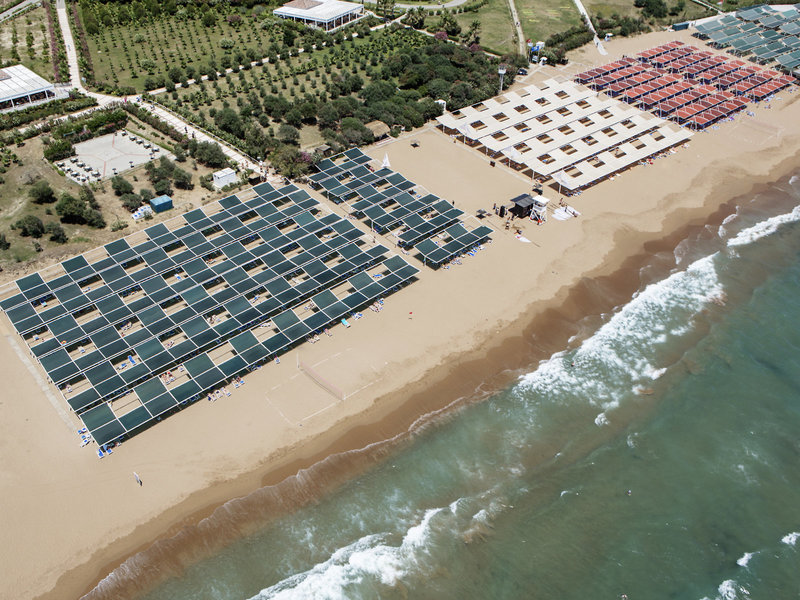 - Pláž: piesočná, jemne piesočnatá, mierne sa zvažujúca, hotelová, ležadlá: bez poplatku, slnečníky: bez poplatku