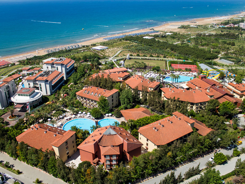 Poloha a okolie: Hotel sa nachádza na pokojnom mieste priamo na súkromnej, mierne sa zvažujúcej piesočnatej pláži hotela (oddelenej iba promenádou). Mesto Side je vzdialené približne 8 km.