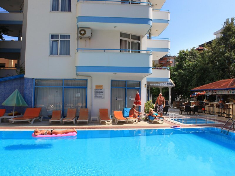Poloha a okolie Apartmánový komplex sa nachádza v krásnej, udržiavanej záhrade v Alanyi, len 60 metrov od piesočnatej pláže. Početné nákupné a zábavné zariadenia sú vzdialené približne 100 až 200 metrov. Verejná doprava je k dispozícii priamo pred hotelom.