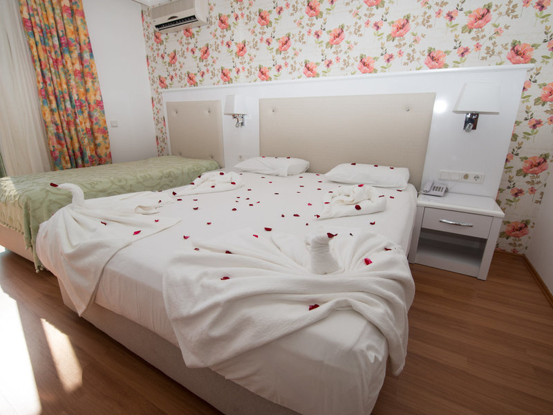 - Double Standard Large Room (DZX2), Doppelzimmer, im Hauptgebäude, Landseite, seitlicher Meerblick, eingeschränkter Meerblick, ca. 17 m², letzte Komplettrenovierung 2015, letzte Teilrenovierung 2016, Gesamtanzahl der Räume in diesem Zimmertyp: 1, Aufteilung wie folgt: 1 Schlafzimmer, 1 Doppelbett (1,6x1,9cm), 1 Queen Size Bett (1,6x1,9cm), 1 Zustellbett (90x1,9cm), Klimaanlage: Barzahlung, pro Tag ca. 5 EUR, kalt, warm, Fußboden: Laminat, Kühlschrank: ohne Gebühr, Telefon, Internet: WLAN/WiFi: ohne Gebühr, Fernseher: Sat-TV, Roomservice: gegen Gebühr, Dusche, WC, Föhn, Balkon: mit Sitzgelegenheit
