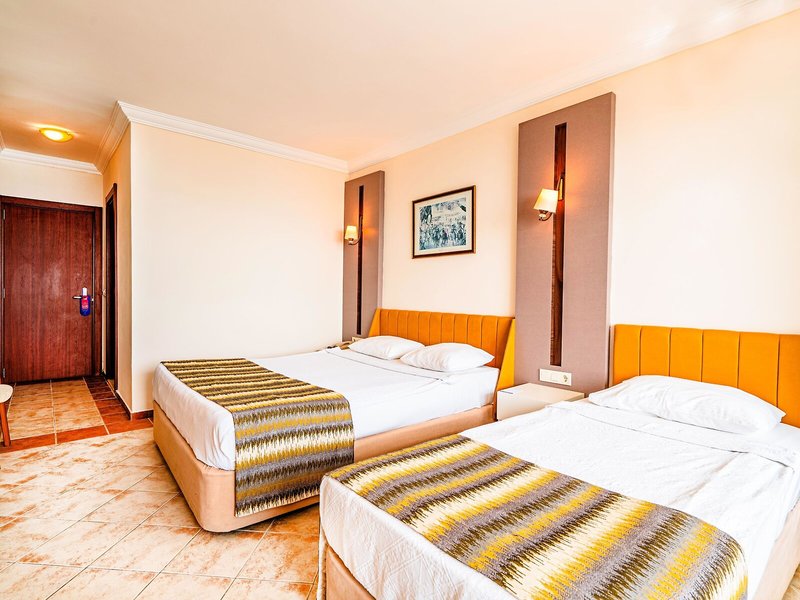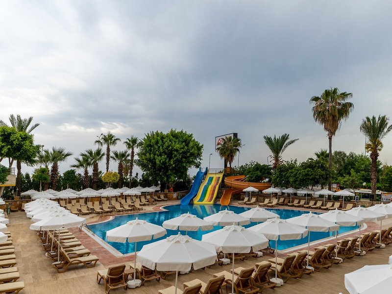 Poloha a okolie Hotel sa nachádza na pobreží asi 10 km východne od Alanye v Mahmutlar. K barom a reštauráciám sa dostanete krátkou prechádzkou a obchody sú vzdialené približne 1 km. Verejná doprava pravidelne premáva do Alanye, kde sú nočné kluby a autobusová stanica. Medzi neďaleké zaujímavé miesta patria jaskyne Damlataş, Červená veža a prístav (všetky sú vzdialené približne 10 km) a hrad Alanya (vzdialené približne 12 km). Hotel je vzdialený približne 130 km od letiska Antalya.