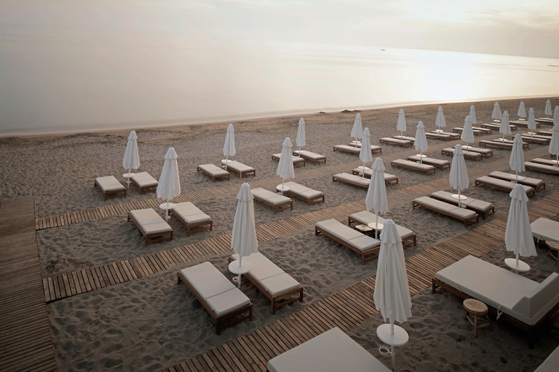 - Sandstrand: flach abfallend, von der Anlage getrennt durch Promenade, Sonnenschirme, Liegen, Strandtuch/Badetuch, Strandservice (ca. 1.4.-31.10.)