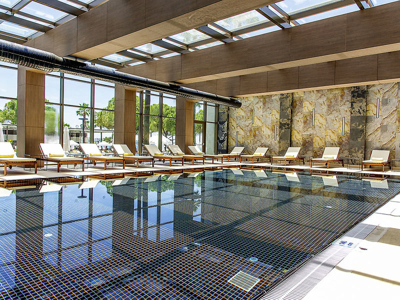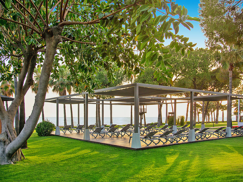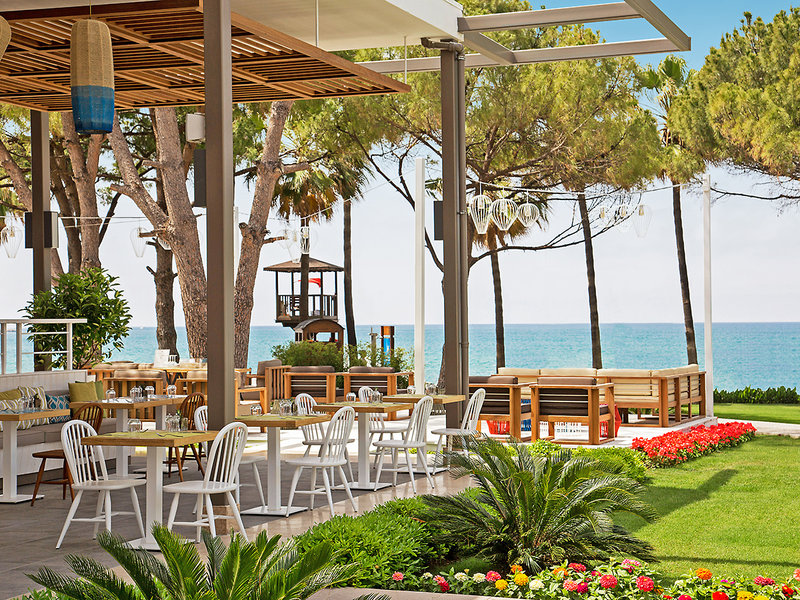 Ausstattung: Hotel der gehobenen Mittelklasse. Gartenanlage, Swimmingpool (April-Oktober), Sonnenterrasse. Extra Strandbereich für Erwachsene (April-Oktober). Liegen, Badetücher, Schirme. Pool-/Snackbar (April-Oktober). Außeneinrichtungen wetterabhängig. Empfangshalle, Rezeption, WLAN, Buffet- und À-la-carte-Restaurants (Reservierung), Patisserie, Bars. Landeskategorie: 5 Sterne, 260 Zimmer, 4 Etagen, 5 Lifte.