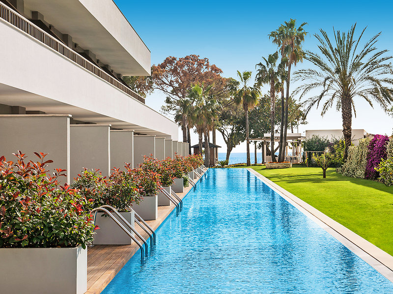 Erleben Sie einen unvergesslichen Traumurlaub am Sandstrand von Side. Es erwarten Sie stilvolle Superior-Zimmer, eine große Poollandschaft und ein professionell ausgestattetes Fitnesscenter für den sportlichen Ausgleich zu entspannten Strandtagen. Hier bleiben keine Wünsche offen.
