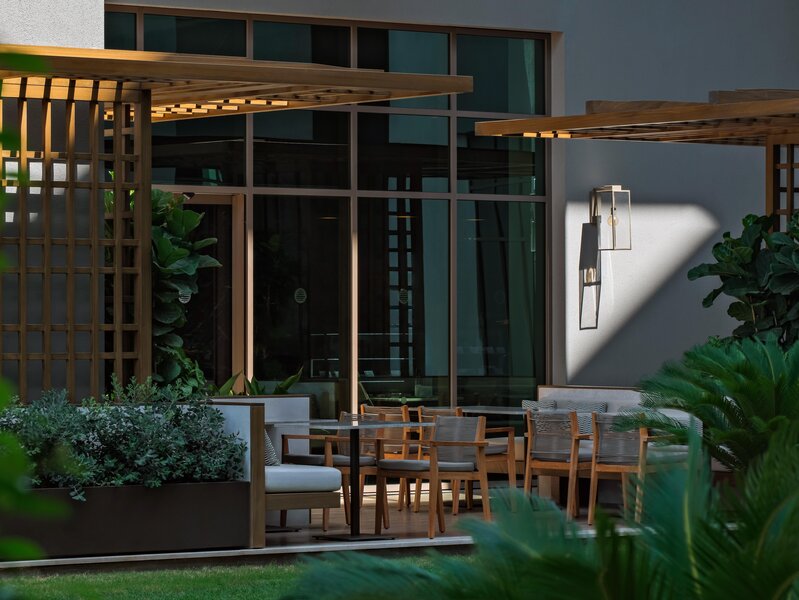 Plaváreň (DZP, cca 44 m2), klimatizácia (centrálna), minibar, súprava na prípravu čaju/kávy, župan/papuče, zrkadlo na líčenie, TV (42 palcov), telefón, WiFi, trezor. Sprcha, WC, fén. Terasa, priamy prístup ku komunitnému bazénu. Maximálne 3E