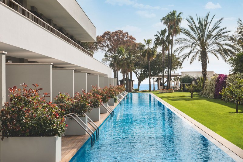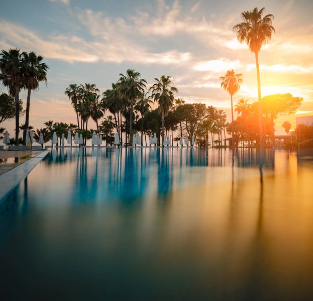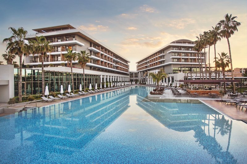 Das schicke Urlaubshotel bietet insgesamt 261 Zimmer verteilt auf zwei Gebäude mit jeweils vier Etagen. Der Empfangsbereich besteht aus einer Lobby mit gemütlichen Sitzgelegenheiten, Lobbybar mit Terrasse und Rezeption. Wi-Fi ist im gesamten Hotelbereich inklusive. Zu den Ausstattungen gehören ein Buffetrestaurant mit Terrasse mit Show Cooking, diverse À-la-carte-Restaurants (unbegrenzte Verwendung nach Verfügbarkeit und mit Voranmeldung), mehrere Bars, eine Patisserie. Ein im Winter geöffnetes Hallenbad, ein Konferenzraum und verschiedene Geschäfte gegen Gebühr. Im gepflegten Außenbereich befindet sich ein großer Süßwasser Swimmingpool mit separatem Kinderbecken, eine Poolbar und eine Snackbar, sowie eine Sonnenterrasse. Hier und am Strand sind Badetücher, Liegen und Sonnenschirme inklusive. Für Erwachsene gibt es eine separate Strandzone und im Buffetrestaurant eine handyfreie Zone. Im Sommer Getränkeservice (9-17 Uhr) am Strand. Essensmöglichkeiten von 8 bis 23 Uhr in einem Restaurant neben der Poolbar im Außenbereich.