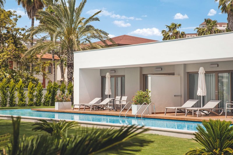 Das schicke Urlaubshotel bietet insgesamt 261 Zimmer verteilt auf zwei Gebäude mit jeweils vier Etagen. Der Empfangsbereich besteht aus einer Lobby mit gemütlichen Sitzgelegenheiten, Lobbybar mit Terrasse und Rezeption. Wi-Fi ist im gesamten Hotelbereich inklusive. Zu den Ausstattungen gehören ein Buffetrestaurant mit Terrasse mit Show Cooking, diverse À-la-carte-Restaurants (unbegrenzte Verwendung nach Verfügbarkeit und mit Voranmeldung), mehrere Bars, eine Patisserie. Ein im Winter geöffnetes Hallenbad, ein Konferenzraum und verschiedene Geschäfte gegen Gebühr. Im gepflegten Außenbereich befindet sich ein großer Süßwasser Swimmingpool mit separatem Kinderbecken, eine Poolbar und eine Snackbar, sowie eine Sonnenterrasse. Hier und am Strand sind Badetücher, Liegen und Sonnenschirme inklusive. Für Erwachsene gibt es eine separate Strandzone und im Buffetrestaurant eine handyfreie Zone. Im Sommer Getränkeservice (9-17 Uhr) am Strand. Essensmöglichkeiten von 8 bis 23 Uhr in einem Restaurant neben der Poolbar im Außenbereich.