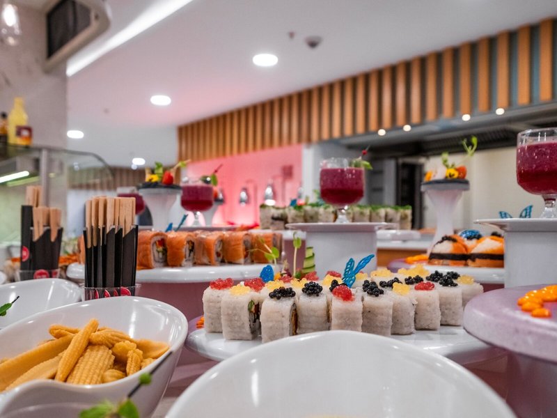 - Hlavná reštaurácia: Kuchyňa: medzinárodná, Diétna kuchyňa: zadarmo, zahrnuté v all inclusive, Bezlepkové jedlá: zadarmo, Detský bufet: zadarmo, Bufet, Show cooking, zadarmo, zahrnuté v all inclusive, sezónne, klimatizované, s terasou, fajčiarska zóna, detská stolička, potrebné vhodné oblečenie