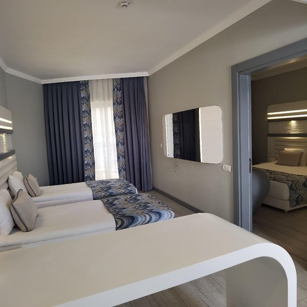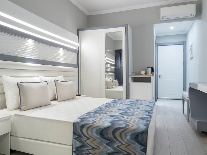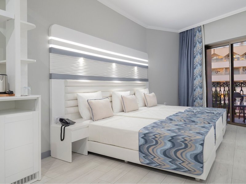 Vaše ubytovanie: Klimatizácia a kúrenie zabezpečujú príjemnú vnútornú klímu. Väčšina izieb má balkón alebo súkromnú terasu, kde si hostia môžu oddýchnuť a vychutnať si výhľad na more. Izby sú vybavené manželskou posteľou, manželskou posteľou veľkosti king alebo rozkladacou pohovkou. Prístelky je možné požiadať. K dispozícii je aj trezor, minibar a písací stôl. Štandardom je aj príslušenstvo na prípravu čaju/kávy. K dispozícii je aj žehliaca súprava a lis na nohavice. Telefón, satelitná TV, rádio a Wi-Fi (bezplatné) poskytujú maximálne pohodlie počas dovolenky. K vybaveniu izieb patria papuče. Kúpeľňa so sprchovacím kútom a vírivkou obsahuje aj sušič vlasov a telefón. Ako špeciálne vybavenie si hostia môžu vychutnať toaletné potreby a výber uterákov v kúpeľniach. K dispozícii sú aj bezbariérové izby s bezbariérovou kúpeľňou. Hotel ponúka rodinné a nefajčiarske izby.
