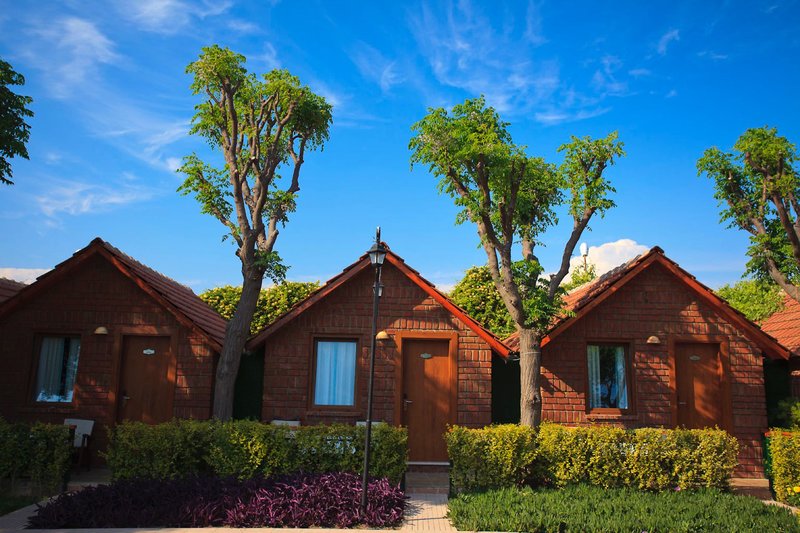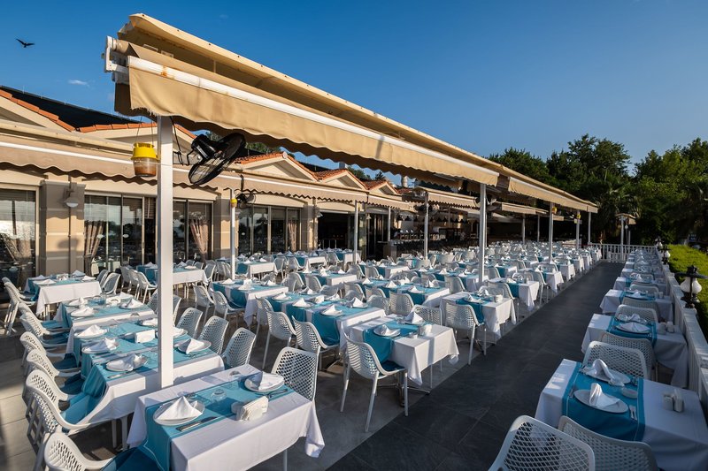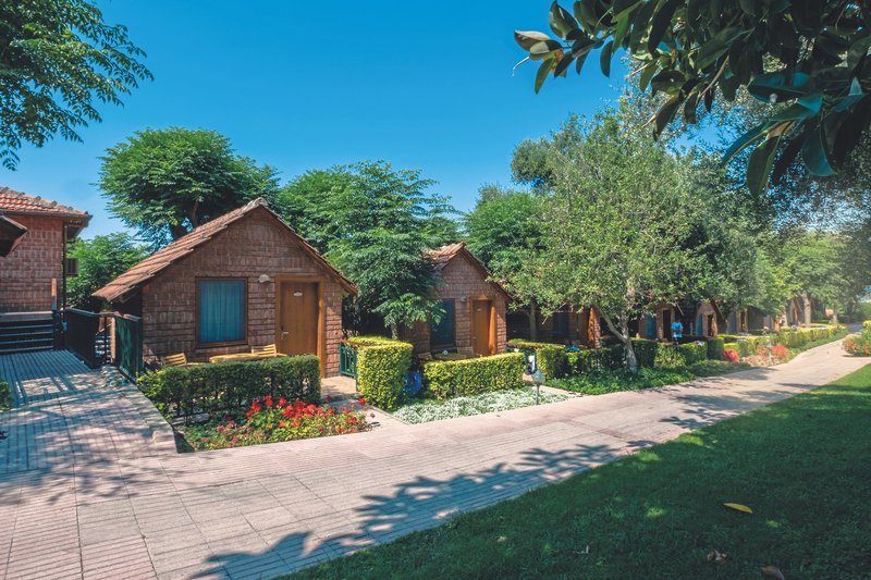 Ausstattung: Die besonders bei deutschen Gästen beliebte Anlage besteht aus 203 Bungalows. Zu den Einrichtungen zählen eine kleine Lobby mit Rezeption und Lobbybar, Wi-Fi steht in der gesamten Anlage kostenlos zur Verfügung. Weitere Einrichtungen sind ein Spielraum, Friseur und Minimarkt (jeweils gegen Gebühr), Amphitheater, weitere Bars und eine Patisserie. Das klimatisierte Hauptrestaurant befindet sich an der Strandpromenade, hier hat man von der Terrasse aus einen herrlichen Blick auf das Meer. Die beiden À-la-carte-Restaurants (wetterbedingt vom 15.5.-1.10., gegen Gebühr) befinden sich im Gartenbereich. In der gepflegten Gartenanlage des Hotels befindet sich ein Süßwasser-Swimmingpool und ein Kinderpool mit Wasserrutsche, Sonnenterrassen sowie eine Pool-/Snackbar und Strandbar. Liegen, Sonnenschirme, Badehandtücher sowie Auflagen stehen sowohl am Pool als auch am Strand kostenlos zur Verfügung.