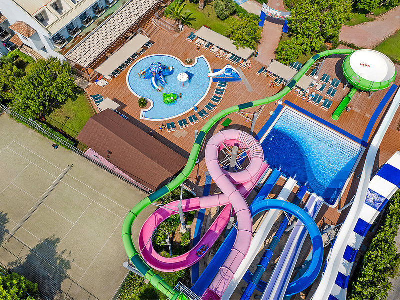 Zažite rodinné dobrodružstvá spolu! Vďaka niekoľkým tobogánom, miniklubu, krytým ihriskám a samostatnému detskému bazénu sa na zelenej ploche s rozlohou cca 98 000 metrov štvorcových určite nebudú nudiť vaši najmenší.