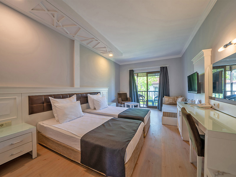 Vybavenie: Na zelenej ploche cca 98 000 m2 sú 3 bazény, 6 toboganov (za hodinu), slnečné terasy. Ležadlá, slnečníky, plážové osušky (1 výmena za deň). Snack bar pri bazéne, bar na plážovom móle (za poplatok). Lobby, recepcia, lobby bar, WiFi. Hlavná reštaurácia, 3 à la carte reštaurácie. Cukráreň, niekoľko barov, obchodov, diskotéka, kaderníctvo. Národná kategória: 5 hviezdičiek, 586 izieb, 1 hlavná budova/15 bungalovov, 2 poschodia.