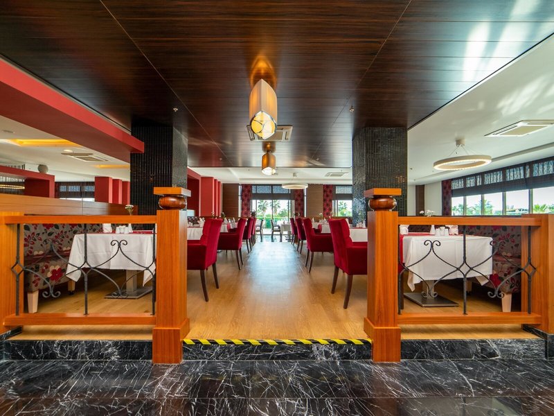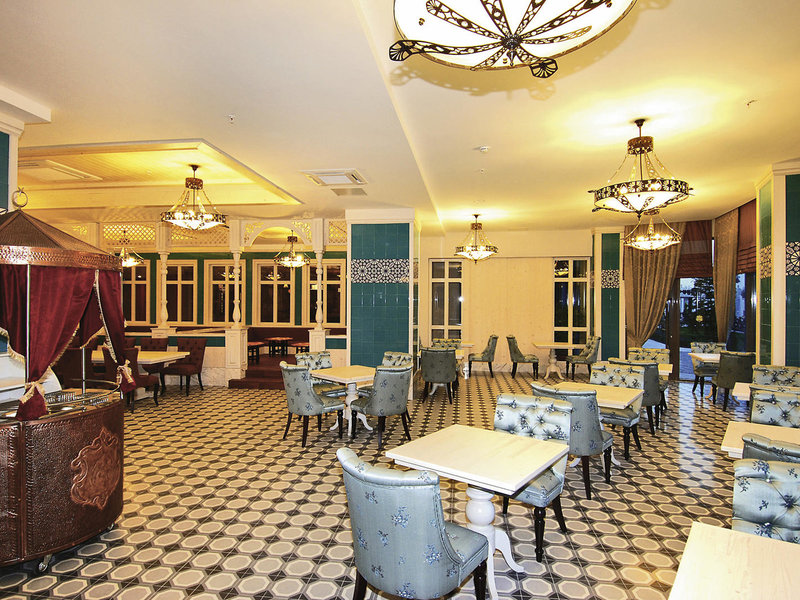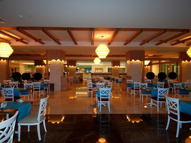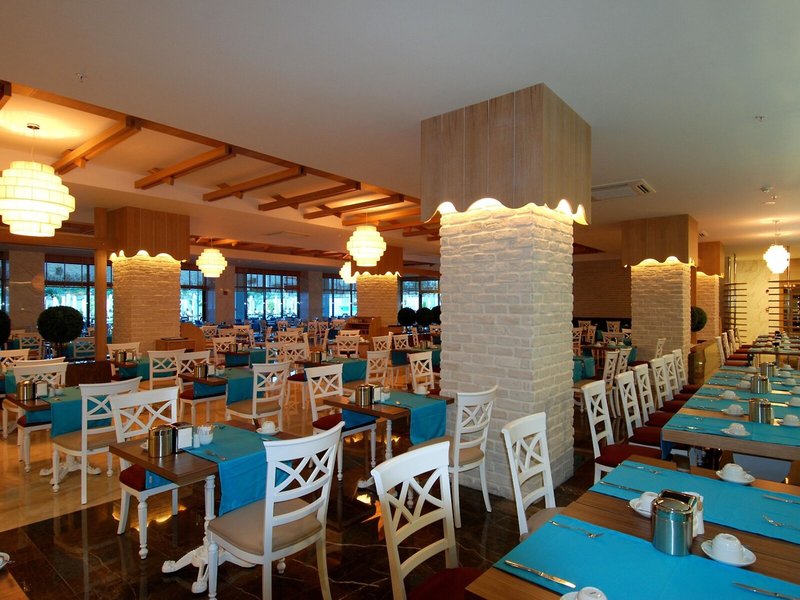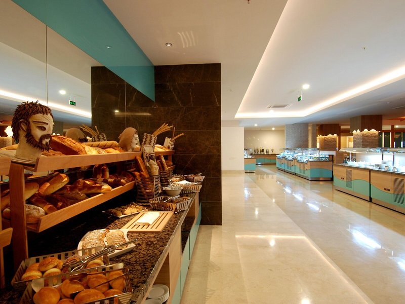 - Reštaurácia SUNRISE: Kuchyňa: medzinárodná, typická pre danú krajinu, regionálna, turecká, diétna kuchyňa: v cene all inclusive, ľahké jedlá: v cene all inclusive, sezónne jedlá: v cene all inclusive, vegetariánske jedlá: v cene all inclusive, celé potraviny : v cene all inclusive , bufet, show cooking, bez poplatku, apríl - november, denne 7:00 - 11:00 a 12:30 - 14:30, klimatizácia, s terasou, fajčiarsky priestor, vhodné požadované oblečenie