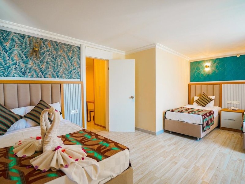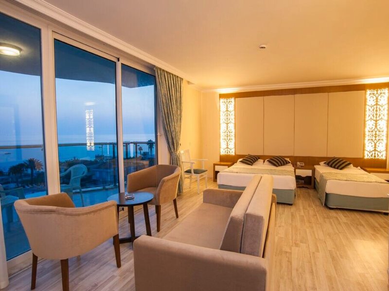 Poloha a okolie Tento komfortne zariadený hotel sa nachádza v srdci mesta Karaburun, priamo na vlastnej krásnej piesočnatej pláži, obklopený barmi, reštauráciami a mnohými obchodmi. Turistické centrum a krásna lesná oblasť sú vzdialené asi 1 km a mesto Manavgat je vzdialené asi 28 km. Do centra mesta Alanya sa ľahko dostanete verejnou dopravou za cca 20 minút (cca 35 km). Letisko Antalya je od budovy hotela vzdialené približne 95 km.