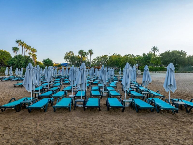 - Pláž: Piesočnatá, mierne svahovita, verejná so súkromnou hotelovou časťou, ležadlá: zadarmo, slnečníky: zadarmo