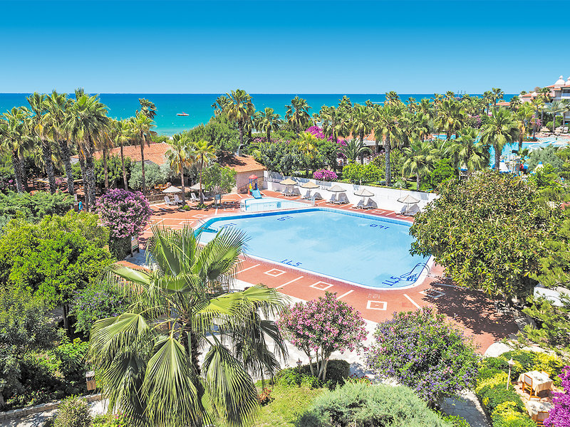 Lage: Direkt am wunderschönen, flach abfallenden Sandstrand. Bis Side-Zentrum ca. 3 km (Taxi-/Minibusverbindung). Beides ist über die Strandpromenade zu Fuß zu erreichen. Zur Provinzhauptstadt Manavgat sind es ca. 8 km.