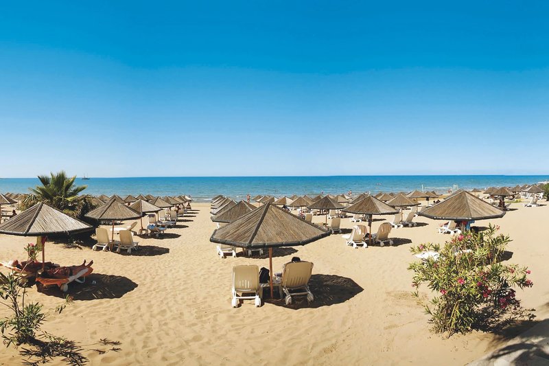 Ausstattung: Dieses beliebte Urlaubshotel der gehobenen Mittelklasse bietet insgesamt 175 Zimmer auf ca. 20.000 m² in hübschen zwei- bis dreistöckigen Gebäuden (in einem Block mit Aufzug). Zu den verschiedenen Einrichtungen gehören die moderne Empfangshalle mit Rezeption, gemütliche Sitzecken, das Hauptrestaurant (internationale Gerichte) mit Terrasse (Nichtraucherzone), Bars und TV-Ecke. In der Kargi Bar, welche als Snack und À-la-carte-Restaurant (internationale Küche) dient, können Sie zwischen 12 Uhr und 16 Uhr Mittagessen (gegen Gebühr). Wi-Fi ist in der Lobby, im Garten, Barbereich, auf den Zimmern und am Pool- und Strandbereich inklusive. In der gepflegten Gartenanlage mit üppigen subtropischen Pflanzen und Bäumen befinden sich die Sonnenterrassen sowie der Süßwasser-Swimmingpool mit Poolbar und Platz zum Sonnenbaden sowie eine Liegewiese. Unsere Gäste können den Außenpool mit vier Wasserrutschen (stundenweise und wetterbedingt) im benachbarten Schwesterhotel "Defne Star" mitbenutzen. Am Pool und am Strand sind Liegen, Auflagen, Strandtücher (im Zimmer) und Sonnenschirme inklusive.