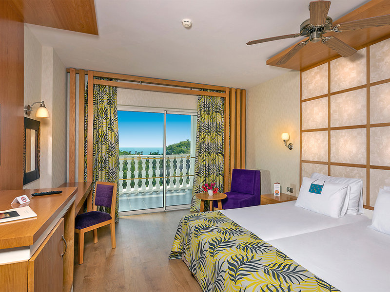 Ubytovanie: Izba Defnem (dvojlôžková izba, cca 37 m2 vrátane kúpeľne), moderne a vkusne zariadená, laminátová podlaha, klimatizácia (centrálne ovládaná, hodinovo, v závislosti od počasia), detektor dymu, telefón s priamou voľbou, posedenie, minichladnička (voda), satelitný LCD TV s hudobným kanálom (niekoľko nemeckých kanálov), trezor, kozmetické zrkadlo. Sprcha, WC, fén. Balkón. Voliteľne k dispozícii s výhľadom na bazén (DPS). Max. 3 dospelí. Izba Economy (DJ, cca 30 m2 vrátane kúpeľne), rovnaké vybavenie ako dvojlôžkové izby, ale o niečo menšia a na menej žiadanom mieste. Max. 2 dospelí.