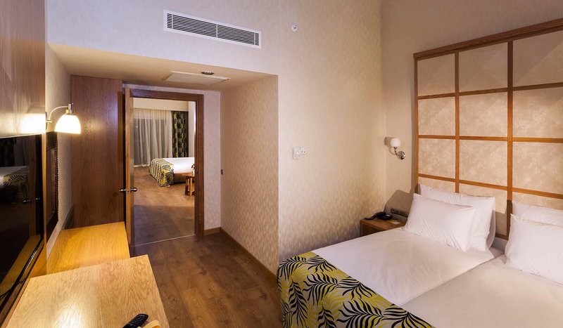 Defnem Deluxe Familienzimmer (66m² inkl. Bad): Besteht aus zwei Schlafräumen und zwei Badezimmern (Dusche/WC) mit Verbindungstür. In den geschmackvoll eingerichteten Zimmern stehen zwei LCD Sat.-TV mit Musikkanal und mehrere deutsche Programme, Kleiderschrank und Balkon zur Verfügung (2FB).